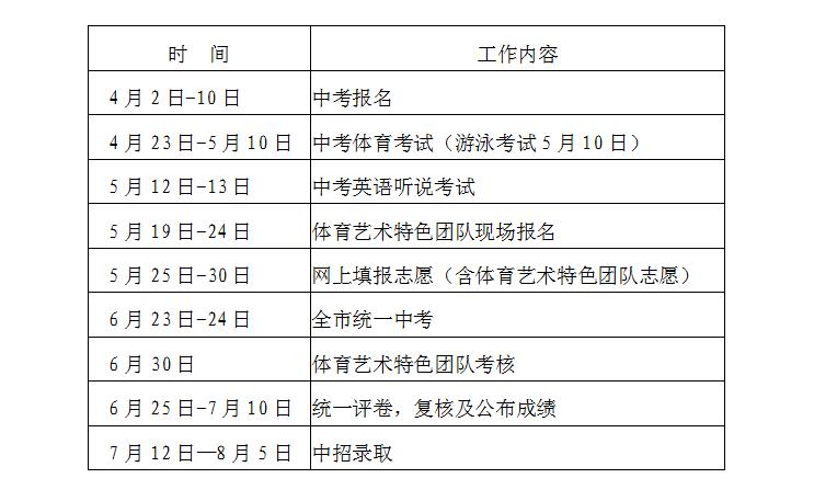 ●中考基本政策不变 4月2-10日报名 6月23-24日(星期六、日)考试