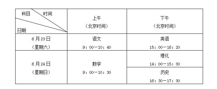 体育考试于4月23日至5月10日进行,英语听说考试于5月12日至13日(星期六、日)进行(继续采用“人机对话”方式),语文、数学、英语、理化(合卷)、历史考试。具体安排如下: