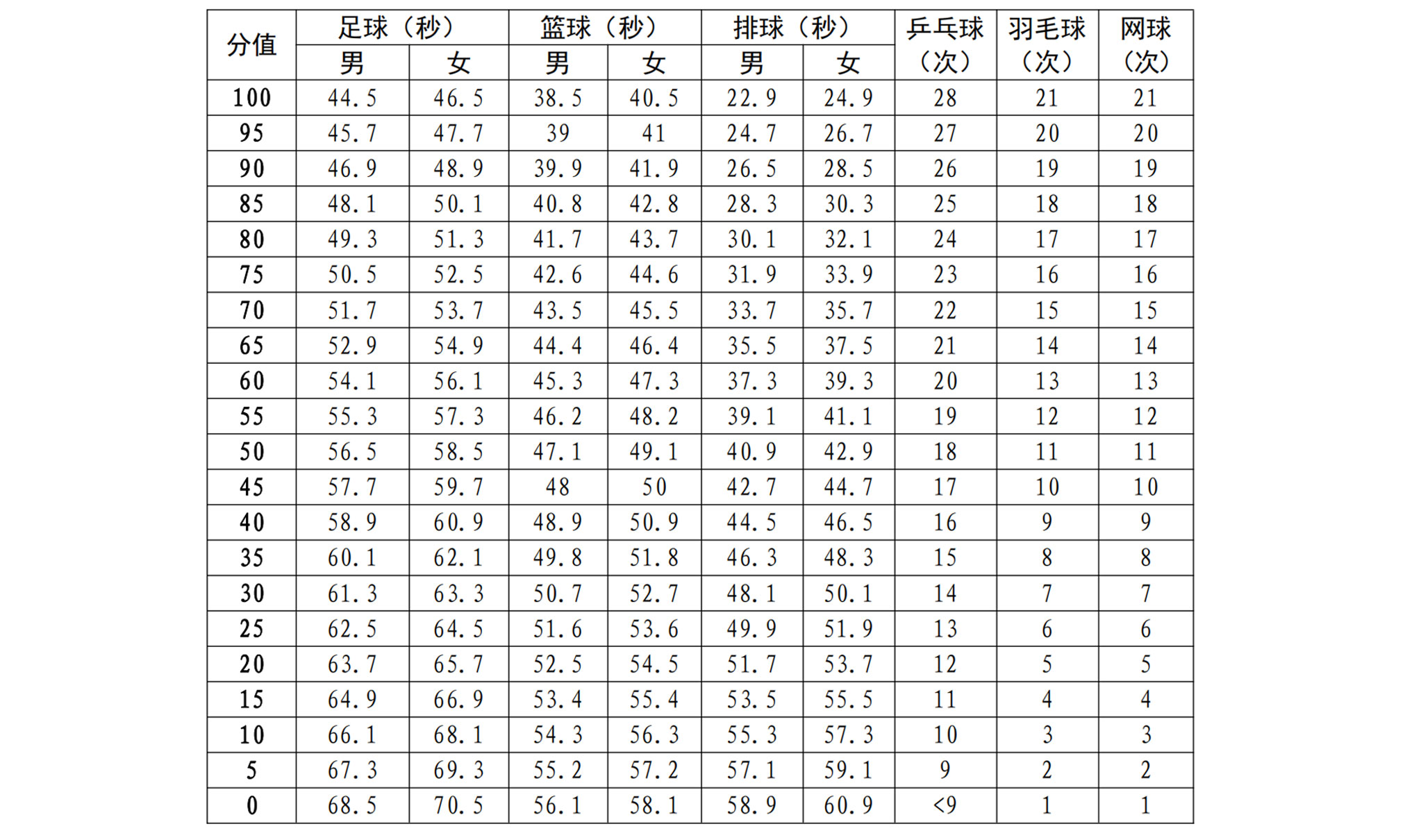 ④颠球数量以监考员的报数为准。若颠球次数不足,按违规处理,不计成绩。