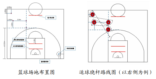 ①考生必须成功完成向左、右两侧传球墙的两次传接球,否则按违规处理,不计成绩。传接球先向左侧或右侧由考生自定。