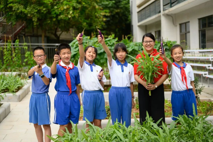 作为省级劳动教育特色学校,龙华教科院附小持续开展系列化、体验式活动课程,利用校园空间,带领学生依据时令种植瓜果蔬菜、花木、中草药等,品类高达百余种,还通过多学科统整,逐步探索“劳动教育+学科教学”的新路径。
