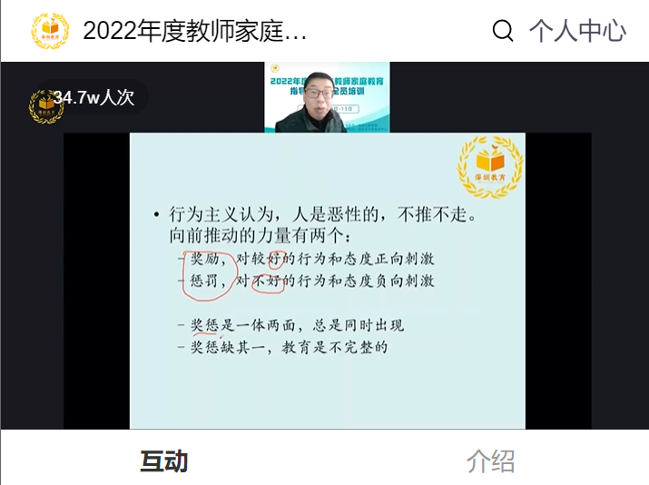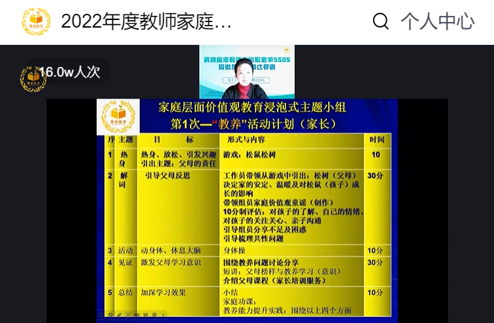 河北省教育科学研究院刘凤华讲座主题是《家庭教育基础理论与梳理》,累计观看已经超过34.7万人次。刘凤华通过三个专题总结提炼各派教育理论精华,结合丰富多样化的家庭教育案例,以教育针对性、实效性为核心,在理论层面和实践层面展开思考、分享、体验。尤其在社会普遍关注的学习效率和青春期教育方面,普及科学家庭教育理念,推广实效家庭教育方法,为教师成长赋能,为学校教育助力。