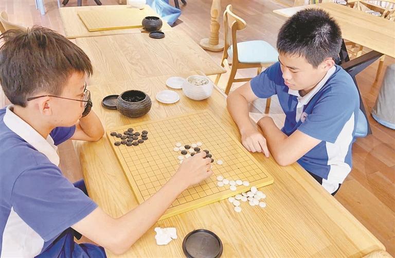 龙华高级中学教育集团观澜校区也充盈着欢乐活跃的课间氛围。作为一所全寄宿制初中,该校打造了安全活力的运动空间,提供操场跑道、校园步道等运动场所,以及各类健身器材、运动用品;打造多元自由的特色空间,利用校园文化广场开展“落日歌友会”活动,利用教学楼天台打造“晨曦生态园”,丰富课间活动;打造交流休息的休闲环境,设立转角图书馆,设置公共桌椅,鼓励学生阅读放松,参与围棋等益智游戏,致力为学生提供各类空间场所,满足学生德智体美劳全面发展需求。