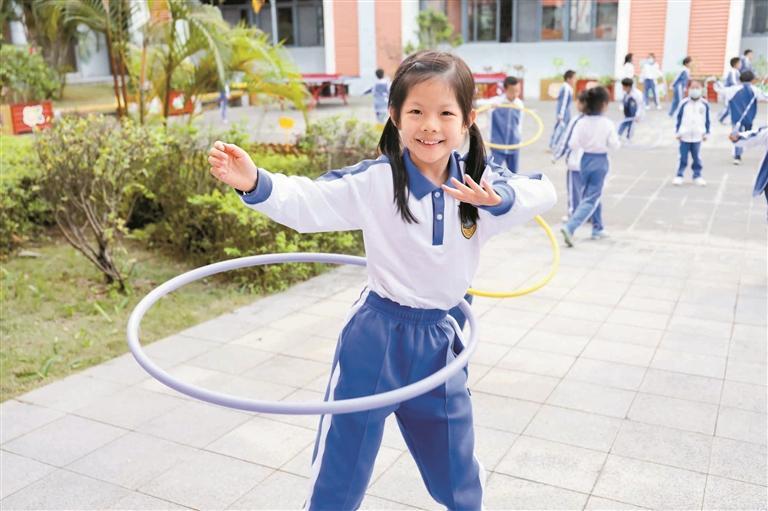 为了学生课间在有限的空间里尽情释放青春的活力,深圳不少学校高效利用校园空间,尽可能地为学生创造活动空间,组织丰富多样的课间活动。