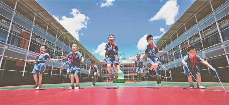 “每天一节体育课”得到了师生和家长们的认可。图为龙华第三小学的学生在上体育课。