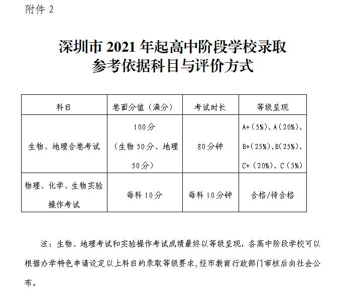 2.深圳市2021年起高中阶段学校录取参考依据科目与评价方式