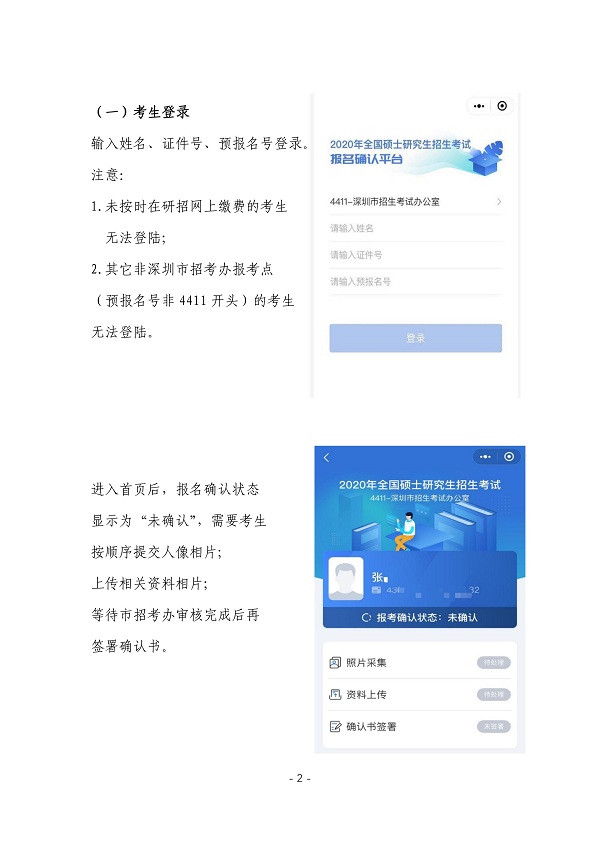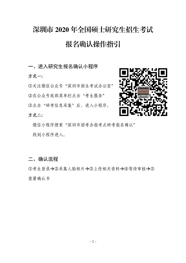 深圳市2020年全国硕士研究生招生考试报名确认操作指引