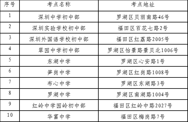 (三)在市招考办报名点(4411)报名考生的考点、考场和座位号已在深圳招考网(zkb.ssmhofficial.com)上公布,请考生尽快查询。考前一天下午16:30—17:30,考生可到考点熟悉交通路线,查看考场情况。凡在深圳大学报名点报名(确认资格)的考生,考场由深圳大学安排。