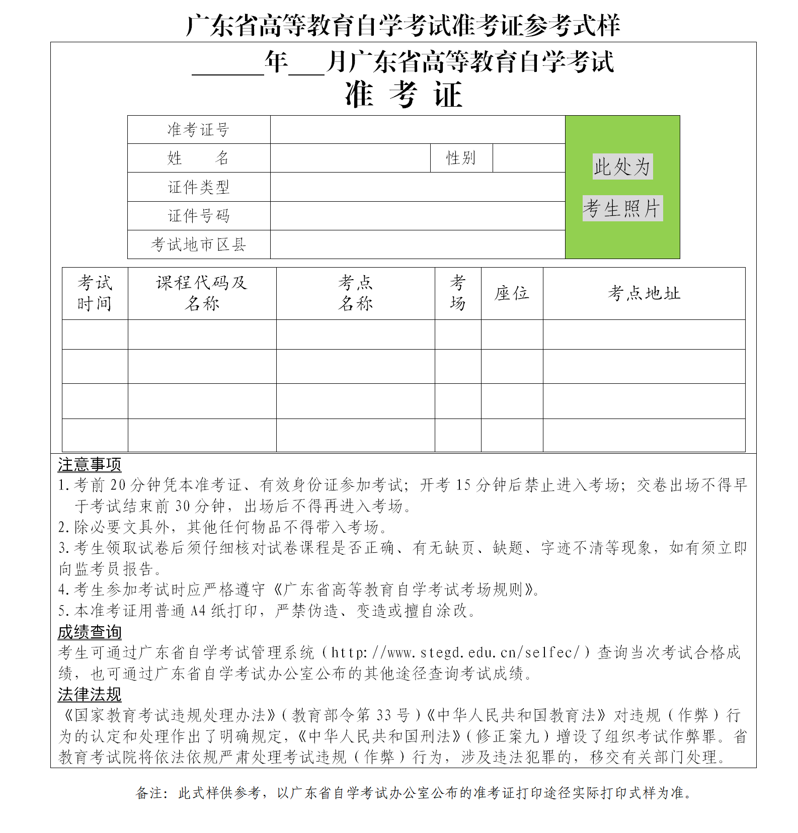为提高考试管理的信息化水平,方便考生,结合我省自学考试发展实际,根据粤考办〔2018〕18号《关于广东省自学考试实施自行打印准考证的通知》的要求,自2018年10月当期考试起,我省高等教育自学考试实行考生自行打印准考证并使用纸质准考证参加考试的办法。为做好该项工作,现将有关事项通知如下: