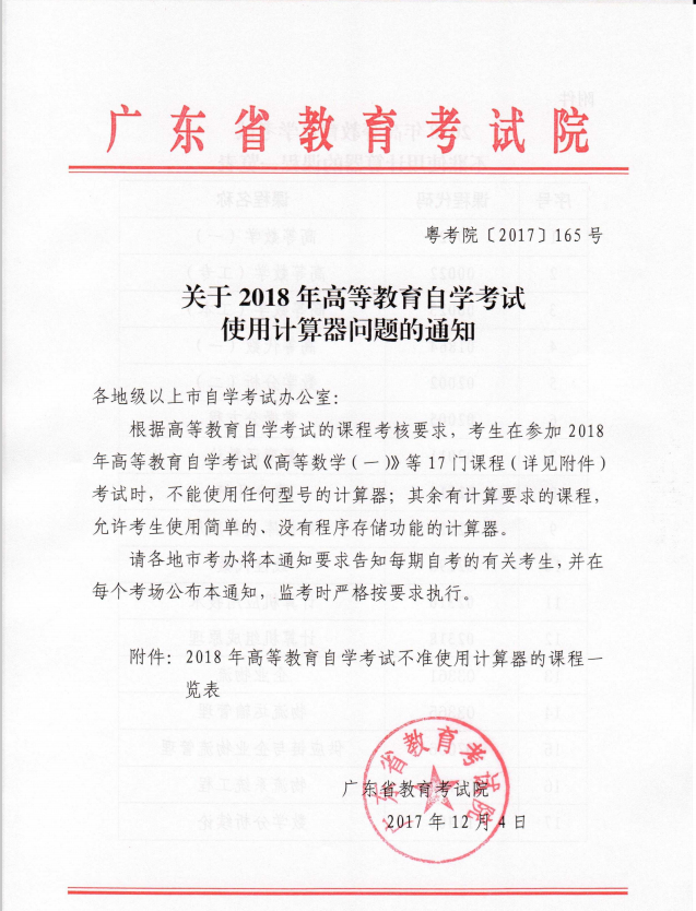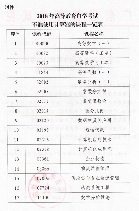 关于2018年高等教育自学考试使用计算器问题的通知